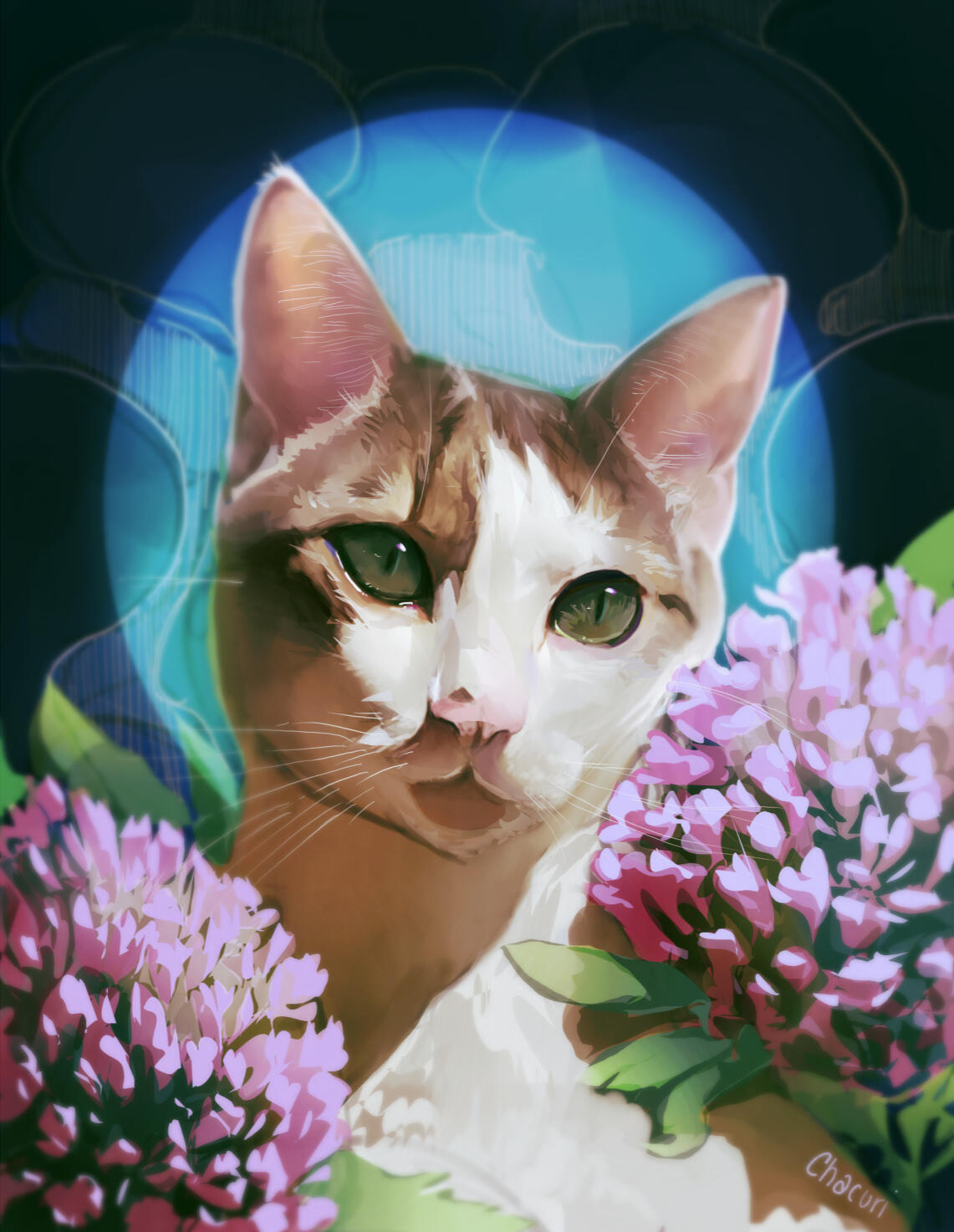 Hallo! My name is Charissa (Kuh-rih-suh) but Cha (Chya) / Chacha / Chacuri is fine. I'm a digital artist who enjoys painting characters in a sea of flowers.I don't post much to social media but recently wanted to go back to daily sketches so ... fingers crossed